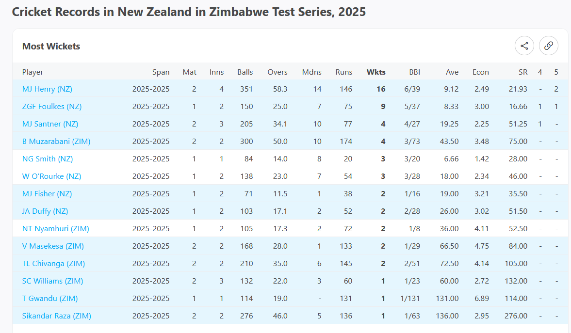 The Zimbabwean top-order were utterly out of their depth facing Henry at times, who continues to be world-class, cementing himself firmly among the Big Four pace bowlers in Test cricket currently: Cummins, Bumrah, Rabada, and Henry (with the ICC Test Rankings backing this up).
